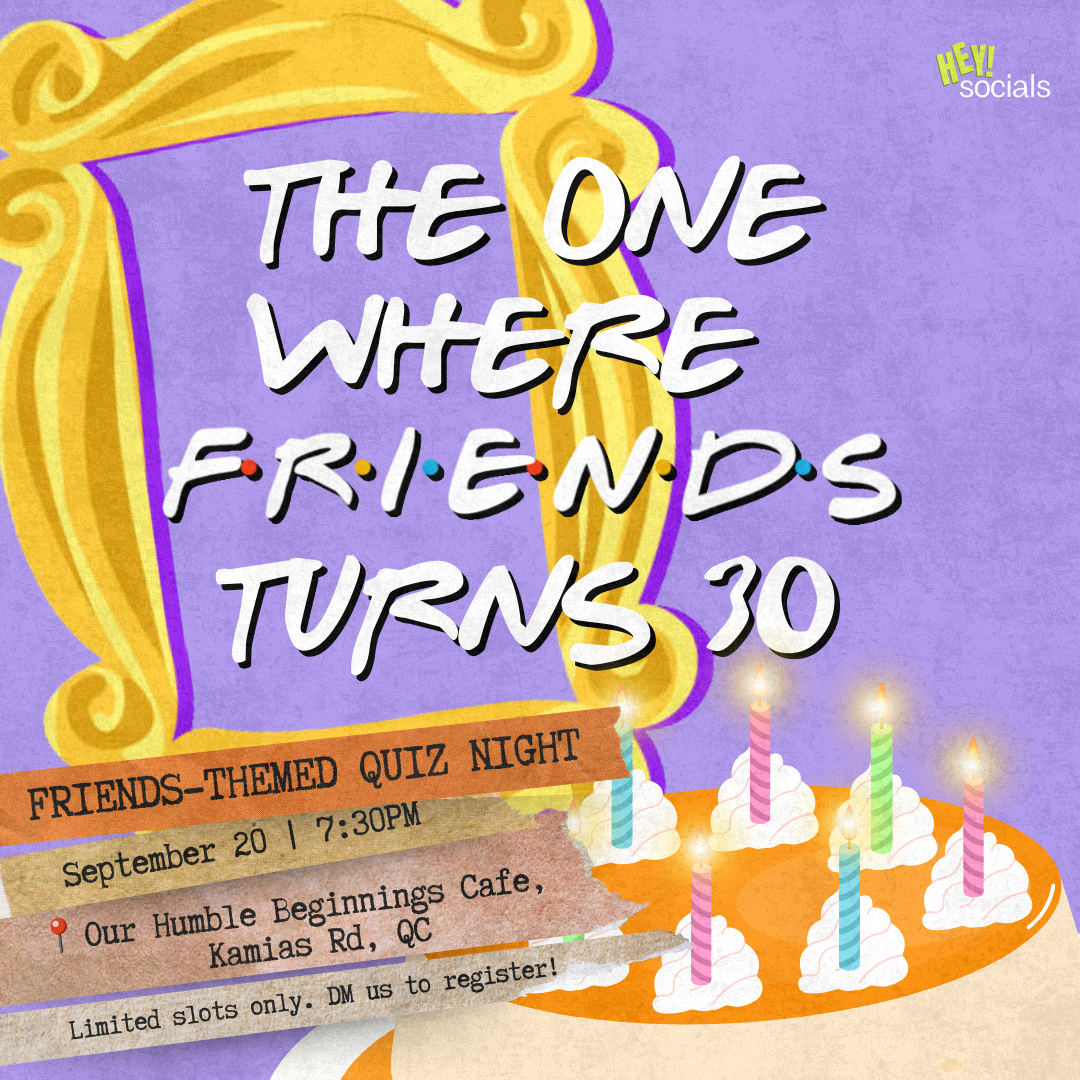 Could we be any more excited? Join us for a Friends-themed Quiz Night as we celebrate their 30th anniversary this month! Test your knowledge and relive your favorite moments with our caffeinated barkada!